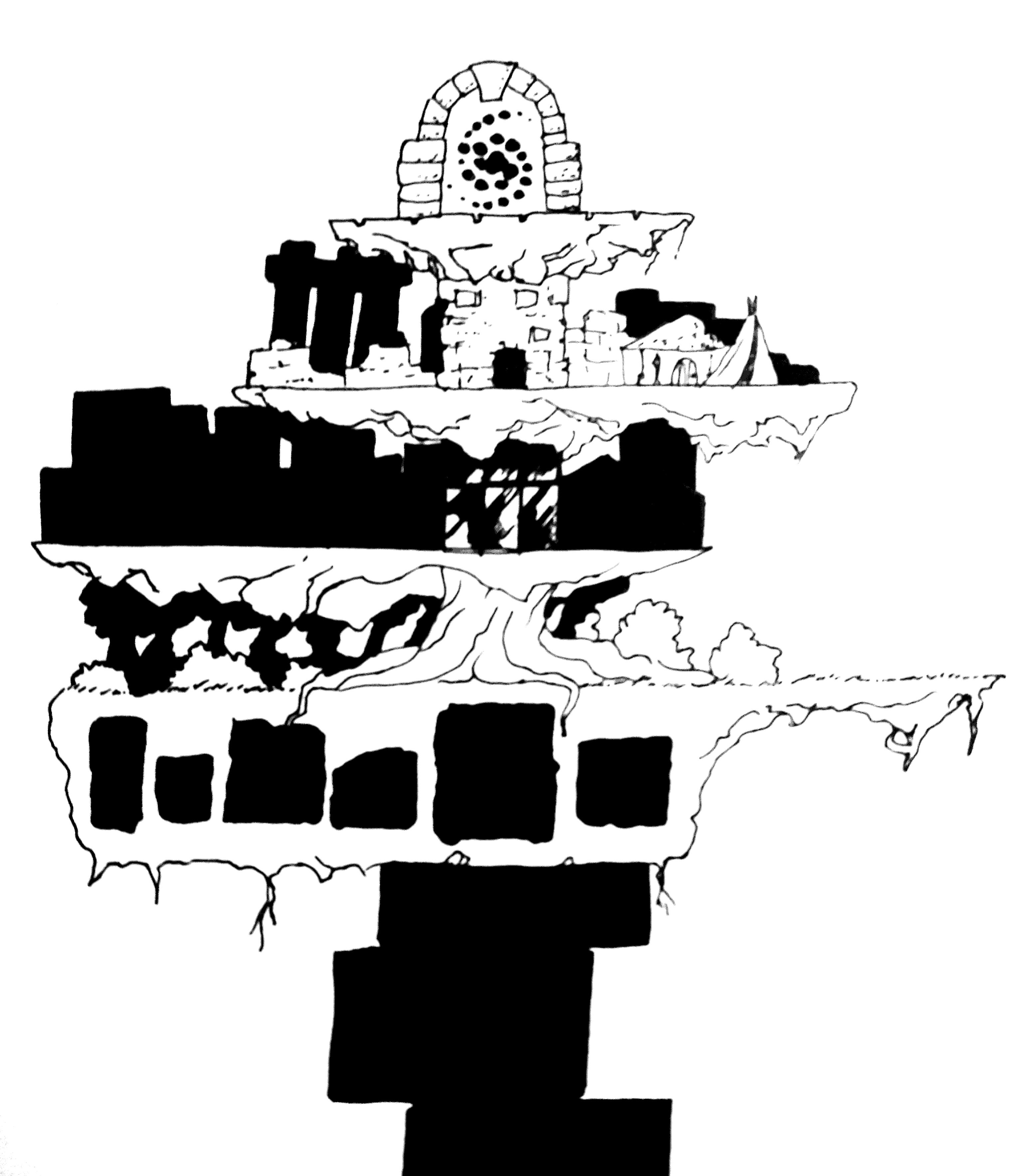 A Map of the Shadowlands: Including the Ring on top, and descending to the Foglands, then The CIty of Glass, the Arcadia, and then the Painted Labyrinth, before finally reaching the depths of Hollow Heart.